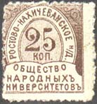 1916(?) г. Разм. рамки 20 х 21 мм. Одноцветная печать на белой бумаге. Зубц. 11 1/2. В центре в овальной рамке номинал. Текст: «Ростово-Нахичеванское н/Д. Общество народных университетов».