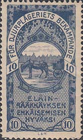 1904 г. Разм. рамки 23 х 42 мм. Одноцветная печать на белой бумаге. Зубц. 11 1/4. С клеем. В прямоугольной раме в центре лошадь, запряженная в телегу. Тексты на шведском и финском языках.
