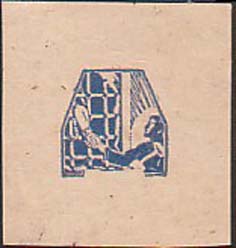 1930(?) г. Ромб разм. 33 х 40 мм. Двухцветная печать на плотной желтоватой бумаге. В рамке в форме ромба два пионера с красным знаменем перед тюремным окном с решеткой, и заключенный.