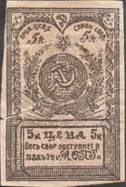 1930(?) г. Разм. 48 х 64 мм. Двухцветная печать плотной белой бумаге. В прямоугольной рамке в центре эмблема МОПР. В правом верхнем и в левом нижнем углах в прямоугольных рамках номинал. Сверху аббревиатура: «МОПР». Внизу текст в три строки: «Не забывайте нас!».