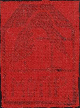1930(?) г. Разм. рис. 32 х 44 мм. Одноцветная печать на красной материи. В центре эмблема МОПР.