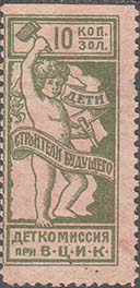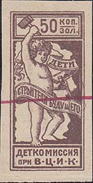 | Разм. рамки 22,5 х 35 мм. В центре фигура ребенка, в правой руке молоток, в левой зубило. | |||||||