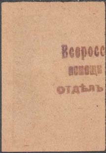 | Примечание: Примечание(я): 1. Марки данного выпуска продавались по фикси-рованной цене – 10 к. 2. Сущесвуют марки данного выпуска с контроль-ным штампом черного и фиолетового цвета с тек-стом в три строки: «Всероссийский Городской Союз помощи больным и раненым воинам отдел по сбору пожертвований» как на лицевой, так и на оборотной стороне марочных листов. Штамп ста-вился сразу на три соседние марки. 3. Края марочных листов не перфорировались, поэтому краевые экземпляры марок не имеют перфорации с одной стороны, а угловые с двух сторон. 4. Вероятно, марки данного выпуска печатались в малых листах, содержащих 12(3 х 4) шт. марок. Полный лист в настоящее время не найден. Максимальный известный фрагмент листа содержит 9(3 х 3) шт. марок. | |||||||