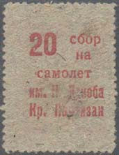 1932 г. Пятый выпуск. Одноцветная печать на серой бумаге низкого качества. Нерегулярная зубц. Рисунок четвертого выпуска, но на обороте номинал и текст в шесть строк: «В фонд постройки 2-х самолетов имени Кр[асных]. Партизан Абхазии».