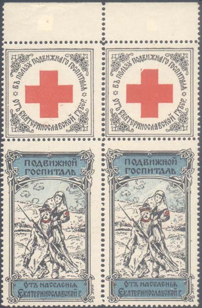 1915(?) г. Двухцветная и трехцветная печать на белой бумаге. Зубц. 11 1/2 и БЗ. С клеем. В двойной пря-моугольной декоративной рамке различные рисун-ки.