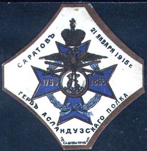 | Герб Асландузского полка. Текст: «Герб Аслан-дузского полка». | |||||