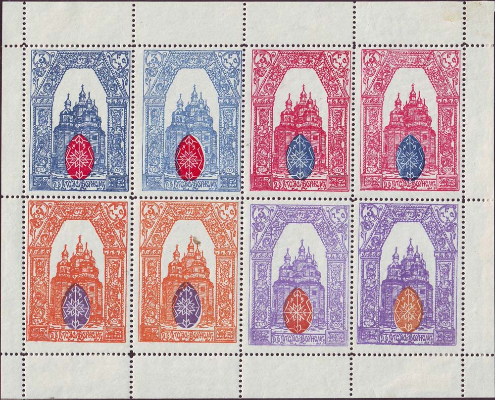1917 г. Разм. рамки 34 х 49 мм. Двухцветная печать на белой бумаге. С клеем. Зубц. 11 1/2. Рисунок и текст аналогичны предыдущему выпуску, но дата: «1917».