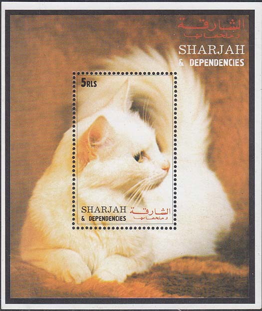 2000(?) г. Разм. рис. 84 х 99. Многоцветная печать на плотной белой глянцевой бумаге. Зубц. 13 1/2 низкого качества. В центре и на полях кошка. В левом верхнем углу номинал. Внизу и на полях название страны на английском и арабском языках.