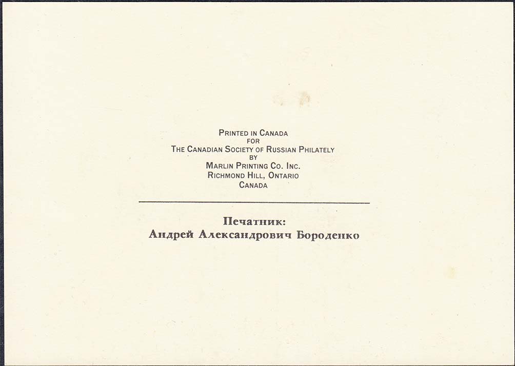 Организация-эмитент: КАНАДСКОЕ ОБЩЕСТВО РУССКОЙ ФИЛАТЕЛИИ