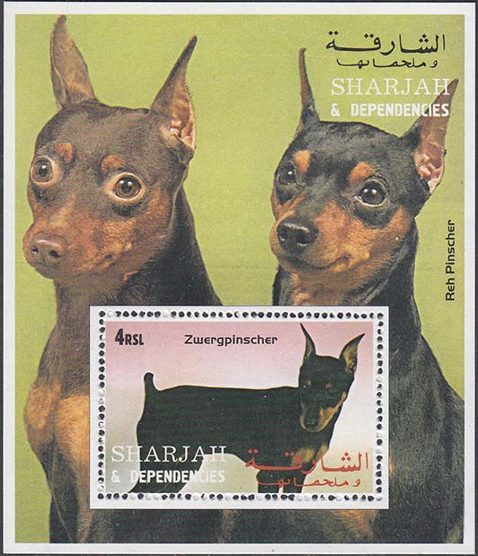 2000(?) г. Разм. рис. 84 х 99. Многоцветная печать на плотной белой глянцевой бумаге. Зубц. 13 1/2 низкого качества. В центре и на полях собаки различных пород. В левом верхнем углу номинал. Внизу и на полях название страны на английском и арабском языках.
