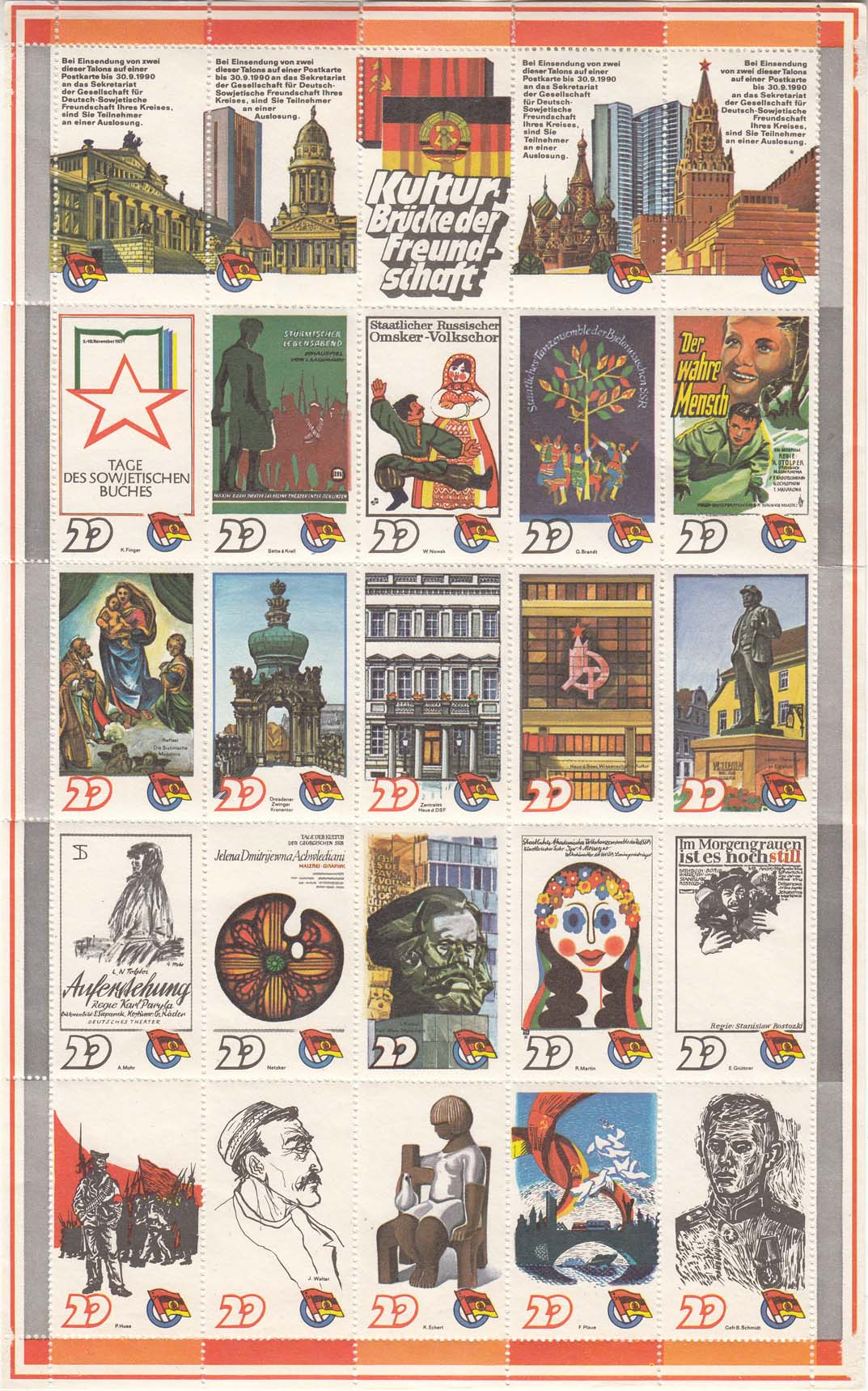 1967(?) г. Разм. по перфорации 33 х 55 мм. Многоцветная печать на белой бумаге. Зубц. 13 1/4. С клеем. Различные рисунки и тексты на немецком языке. Внизу эмблема общества и номиналы.