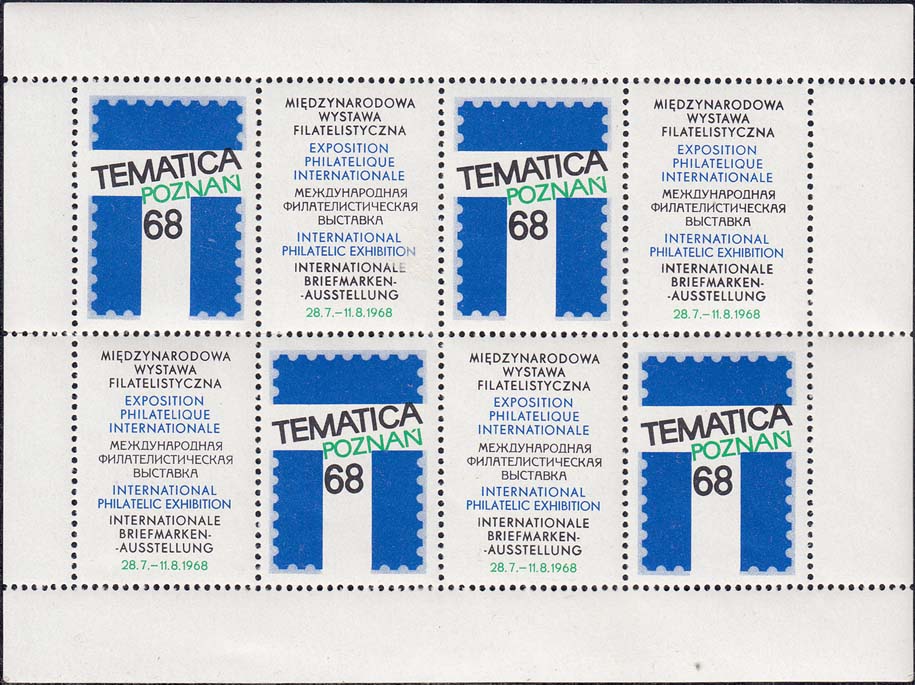 1968 г.   Разм. по перфорации 31 х 43 мм. Двухцветная печать на белой бумаге. Зубц. 11 3/4. С клеем.