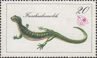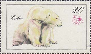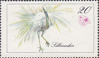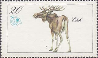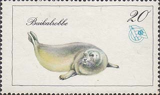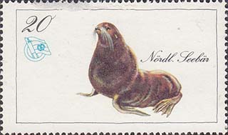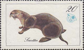 1976(?) г. Разм. рамки 48 х 27 мм. Многоцветная печать на белой бумаге. Зубц. 13 1/2. С клеем. В прямоугольной рамке в центре различные животные и пояснительная подпись. эмблема общества и номинал.