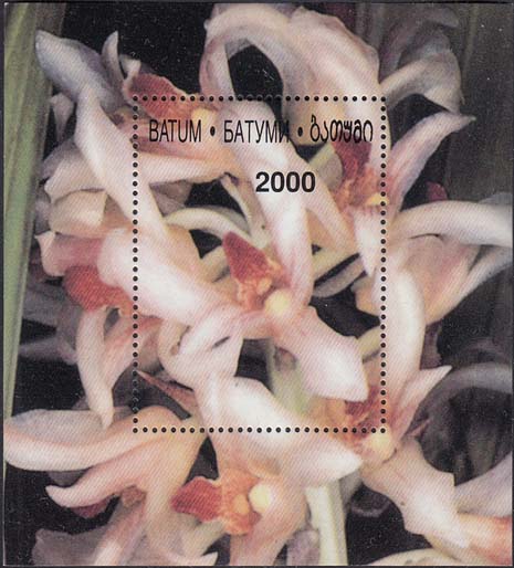 2000(?) г. Блок разм. 78 х 86 мм. Многоцветная печать на белой бумаге. Зубц. 13 3/4. С клеем. В центре цветок орхидеи. Сверху номинал и название территории на английском, русском и грузинском языках. На полях блока продолжение рисунка.