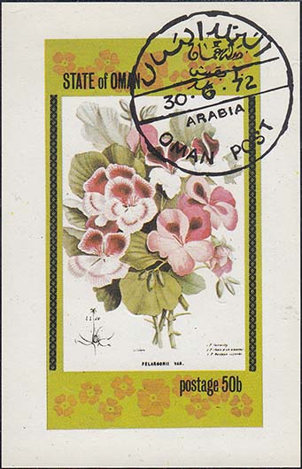 1972 г. Разм. 57 х 89 мм. Многоцветная печать на белой глянцевой бумаге. В центре цветы. Тексты на английском и арабском языке.