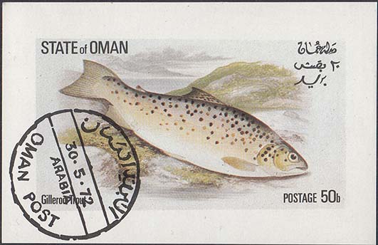 1972 г. Разм. 89 х 58 мм. Многоцветная печать на белой глянцевой бумаге. В центре рыба. Тексты на английском и арабском языке.
