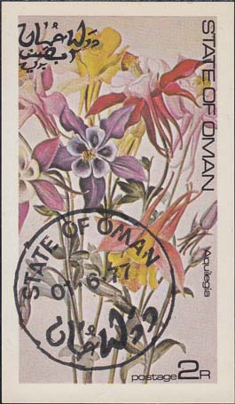1977 г. Разм. по перфорации 32 х 51 мм. Многоцветная печать на белой глянцевой бумаге. Зубц. 14 1/4. В центре различные растения. По периметру номинал и различные тексты на арабском и английском языках.