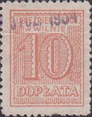 1934 г. Одноцветная печать на белой бумаге. Разм. рамки 18 х 23,5 мм. Зубц. 11 1/2. С клеем. В двойной прямоугольной рамке в центре номинал. Сверху текст в в две строки на Польском языке: «Социальное страхование г. Вильно». Внизу текст на польском языке: «Доплата».