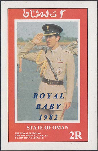 1982 г. Синяя надпечатка в три строки на английском языке: "Royal baby 1982" на блоках, посвященных бракосочетания принца Чарльза и Дианы Спенсер.