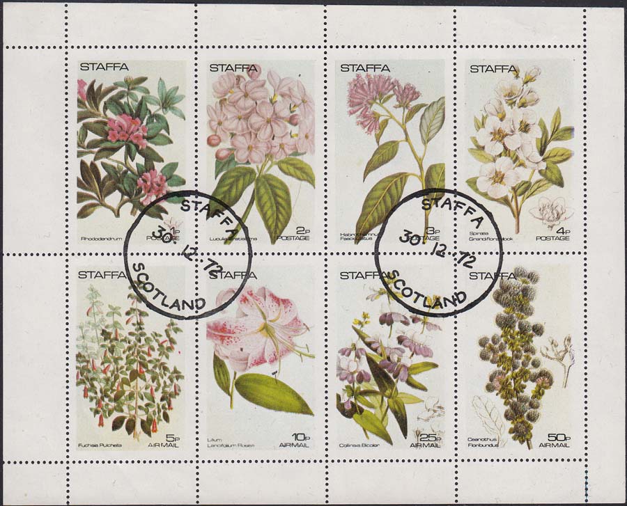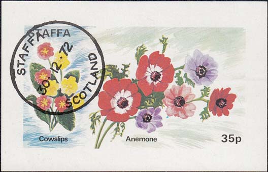 1972 г. Блок разм. 88 х 57 мм. Многоцветная печать на белой глянцевой бумаге. В центре цветы различных видов. В левом верхнем углу название территории на английском языке. В правом нижнем углу номинал.