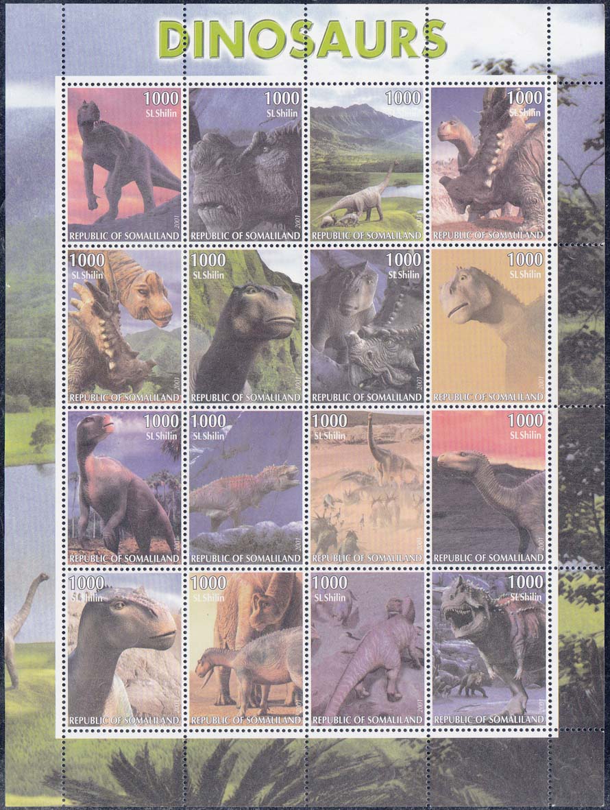 2000(?) г. Разм. рис. 28 х 38 мм. Многоцветная печать на белой глянцевой бумаге. Зубц. 14. В центре изображения динозавров различных видов. Сверху номинал. Внизу название региона на английском языке.