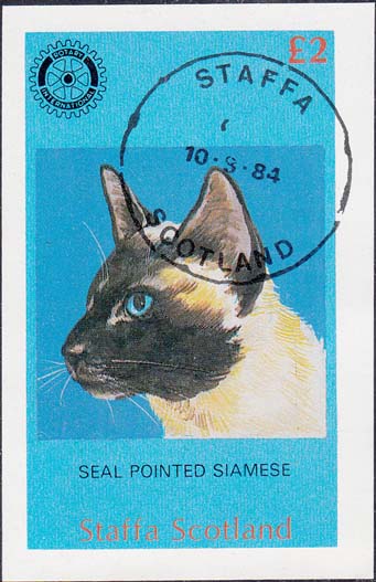 1984 г. Блок разм. 58 х 89. В центре голова сиамской кошки. В правом верхнем углу номинал. Внизу пояснительный текст и название территории на английском языке.