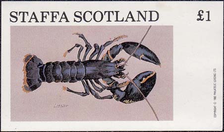 1982 г. Блок разм. 76 х 45 мм. Многоцветная печать на белой глянцевой бумаге. С клеем.\nВ центре на сплошном фоне изображение омар. Сверху название региона на английском языке и номинал. Справа внизу вертикально выходные данные мелким шрифтом.