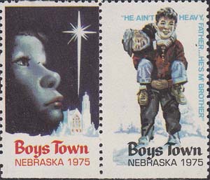 1975 г. Разм. 26 х 43 мм. Многоцветная печать на белой мелованной бумаге. Зубц. Лин. 12 1/2. С клеем. В центре различные рисунки. Текст на английском языке: "Город Мальчиков Небраска 1975".