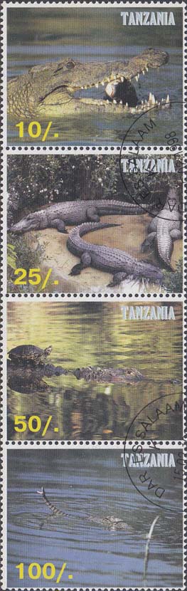 1998 г. Разм. по перфорации 45 х 36 мм. В центре крокодилы, название страны на английском языке и номинал.