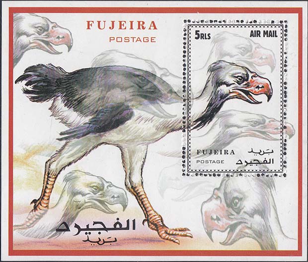 2000 г. Разм. рис. 99 х 84. Многоцветная печать на плотной белой глянцевой бумаге. Зубц. 13 1/2 низкого качества. В центре и на динозавры. В левом верхнем углу номинал. Внизу и на полях название страны на английском и арабском языках.