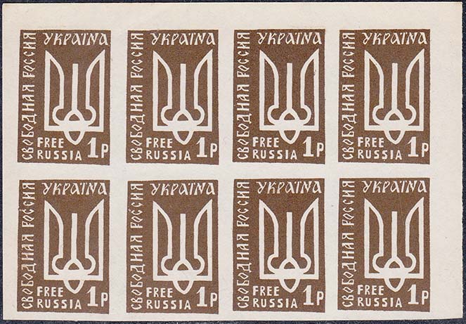 1959 г. 01.12.1959 г.  Разм. рис. 21 х 32 мм. Одноцветная печать на плотной белой бумаге. В центре трезубец, номинал и тексты на русском и английском языках.