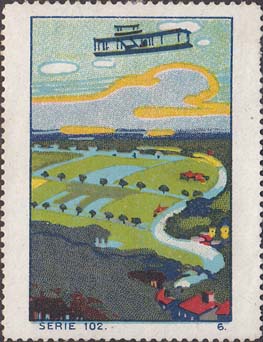 1912(?) г. Одноцветная печать на белой мелованной бумаге. Зубц. 11 1/2. С клеем. В прямоугольной рамке различные рисунки на тему авиации. Под рамкой справа или снизу номер серии и знака.