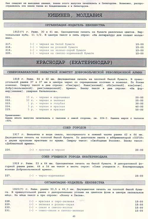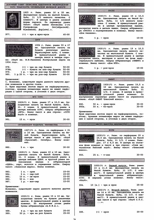 \ Печатные каталоги отечественных непочтовых знаков